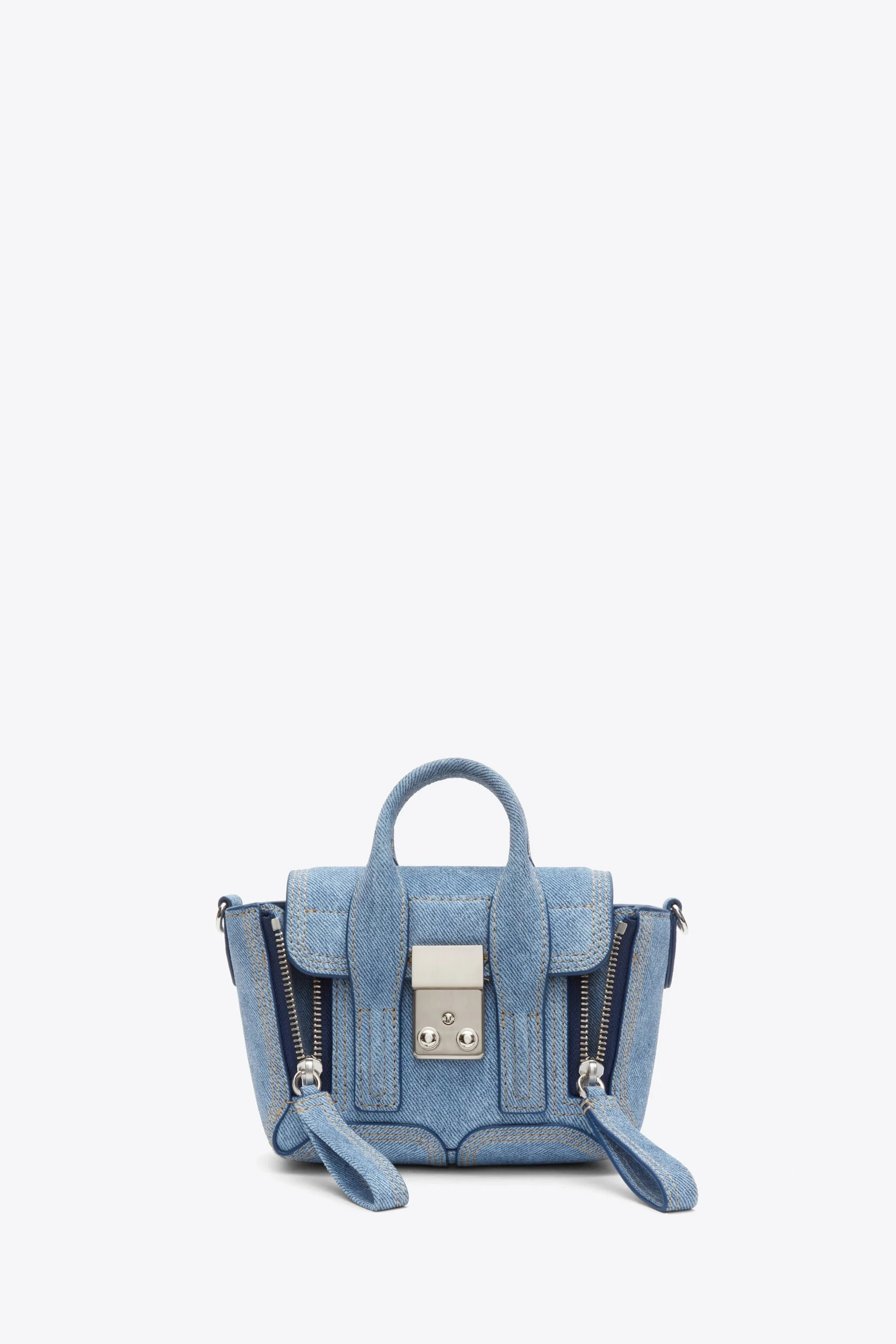 The Pashli Nano gets a fresh twist in suede, printed to mimic the look of denim. Complete with our signature push-lock closure and expandable side zip-pleats, this compact holdall balances laid-back attitude with sleek functionality. Wear it crossbody with the optional strap for effortless style. - 100% Cow Leather - Height: 4.33" - Width: 7.48" - Depth: 3.15" - Handle Drop: 19.69'' Top Handle"