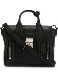 Pashli mini satchel bag You might not understand Russian, but trust us Pashli is the only word you need to know. The meaning? Let's go! So probably this Pashli mini satchel bag from 3.1 Phillip Lim is sending you a message. Let's go? Highlights - Black - Calf leather - Two rounded top handles - Adjustable detachable shoulder strap - Silver-tone clasp fastening - Main compartment - Internal zip pocket - zip details Imported Composition Outer: Calf Leather 100% SIZE & FIT Measurement STRAP 22 in(55.9 cm) WIDTH 8.26 in(21 cm) DEPTH 2.99 in(7.6 cm) HEIGHT 6.29 in(16 cm) HANDLE 2.36 in(6 cm) Washing instructions Do Not Wash/Do Not Dry Clean