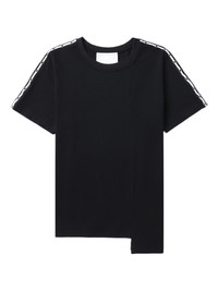 asymmetrical shoulder-embellished t-shirt Highlights - Black - Cotton - Asymmetrical hem - Short sleeves - Round neck - Shoulder embellishment Imported Composition Cotton 100% Washing instructions Read Manufacturer Guidelines