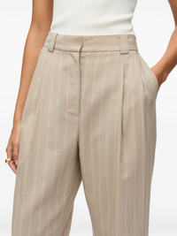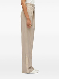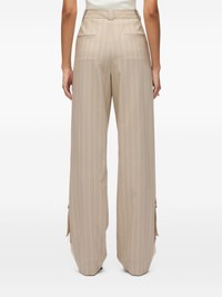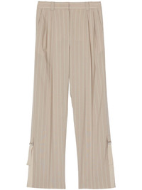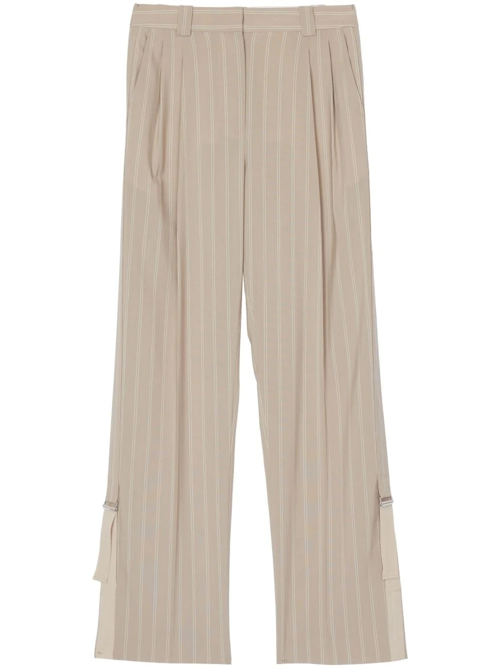 pinstripe-pattern trousers Highlights - Almond beige - Concealed front fastening - Two side slash pockets - Two rear jetted pockets - Belt loops Imported Composition Viscose 46%, Fabric 31%, Wool 23%