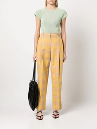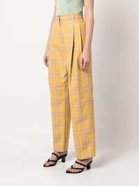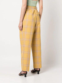 plaid jacquard straight leg trousers yellow/pink high-waisted concealed front fastening belt loops two side inset pockets tonal stitching pleat detailing rear flap pocket Imported Composition Polyester 100% SIZE & FIT Model measurements Height 5 ft 10 in(1.79 m) Bust/Chest 31.1 in(79 cm) Hips 33.85 in(86 cm) Waist 22.83 in(58 cm) FittingInformation This piece fits true to size. We recommend you get your regular size Designed to be fitted at the waist and hips, loose over the leg Made with a mid-weight fabric Washing instructions Specialist Cleaning