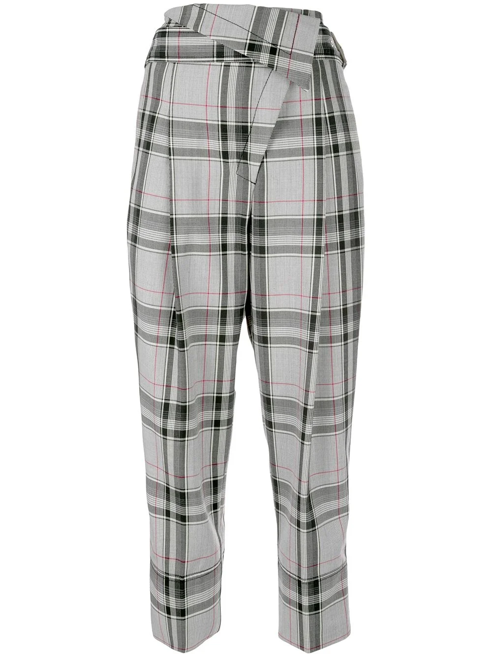 plaid tapered trousers You'll catch us wearing these grey cotton plaid tapered trousers from 3.1 Phillip Lim while shopping in Avenue des Champs-Elysees wearing red lipstick, a baguette in our hand and never wanting to leave. A bientot. Featuring a high waist, side slit pockets, a back pocket, a tapered leg, a regular length, a plaid pattern and a belted foldover waist. Imported Composition Cotton 100% Washing instructions Dry Clean Only