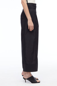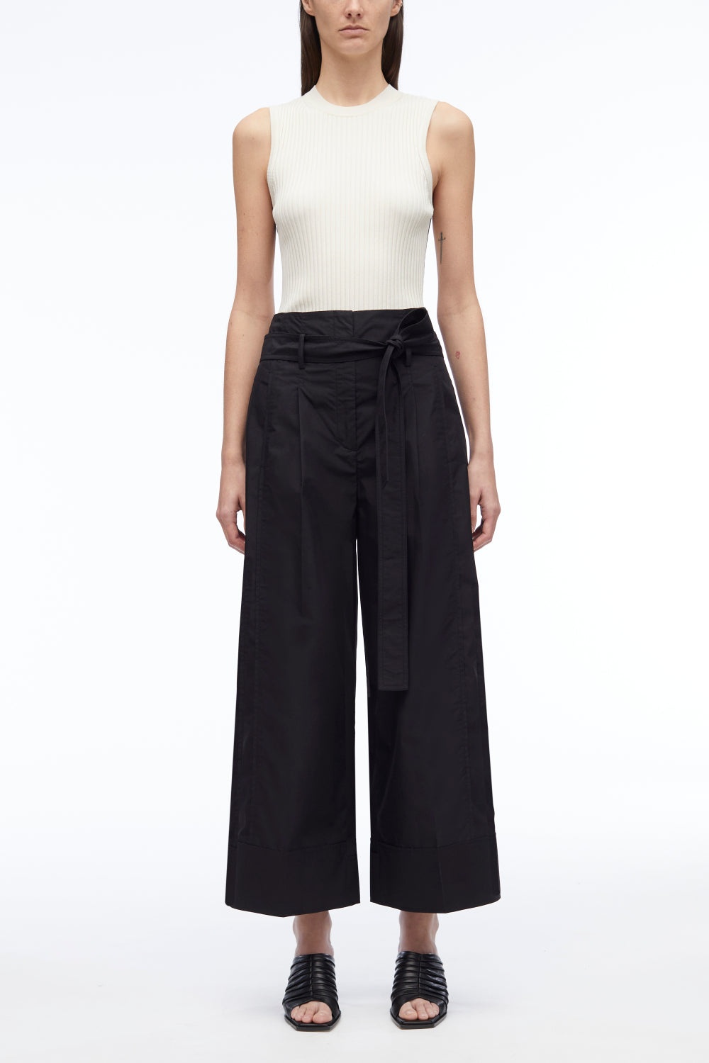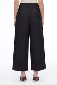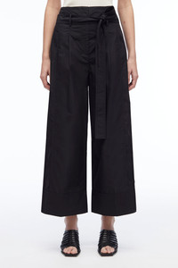 Wide leg pant in cotton poplin with a self-tie waist belt. Side slip pockets and a single back welt pocket with button closure. Pleats at front. Turn up cuffs. Concealed front closure. - Self-tie waist belt - Side slip pockets - Back welt pocket with button closure - Front pleats - Turn up cuffs - Concealed front closure - Model Height: 5'10', Bust: 31', Waist: 23', Hips: 34' and wearing a size 2