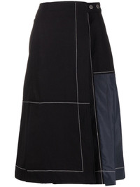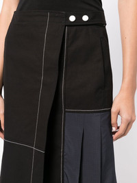 pleat-detail midi skirt black/blue cotton asymmetric design contrast stitching pleat detailing side press-stud fastening high waist A-line Imported Composition Cotton 100% SIZE & FIT Model measurements Height 5 ft 10 in(1.77 m) Bust/Chest 31.49 in(80 cm) Hips 35.43 in(90 cm) Waist 25.19 in(64 cm) FittingInformation This piece fits true to size. We recommend you get your regular size Designed to be fitted at the waist and through the thigh, loose from the knee Made with a mid-weight non-stretch fabric Washing instructions Dry Clean Only