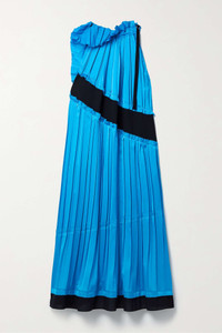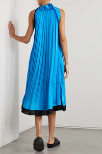 EDITORS'NOTES 3.1 Phillip Lim's dress has an asymmetric, ruffled neckline with an adjustable strap - style it dangling down the front or back. The midi design is cut from pleated satin in a paneled construction and underpinned with contrasting crepe de chine that peeks through at the waist and hem. SIZE & FIT - Fits true to size, take your normal size - Cut for a loose fit - Lightweight, non-stretchy fabric - Model is 180cm/ 5’11” and is wearing a size Small DETAILS & CARE - Light-blue satin, black crepe de chine - Buckle fastening at neck - 100% polyester; trim: 100% polyester - Machine wash