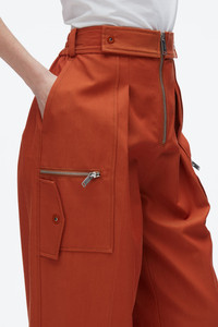 Cool, tailored, and just a little bit rebellious—these pants reinterpret utility through a polished lens. Cut from a cotton-viscose twill with a soft drape and refined finish, they feature sharp pleats, a sculptural wide leg, and oversized flap pockets with exposed zippers for subtle edge. A snap belt detail at the waist adds structure, while the relaxed silhouette keeps things grounded. Pair with a fitted knit or crisp button-down for modern ease with attitude. - 55% Cotton, 45% Viscose - Model is 5'10', Bust: 30', Waist: 23', Hips: 34' and wearing a size 4 - Professional dry clean only