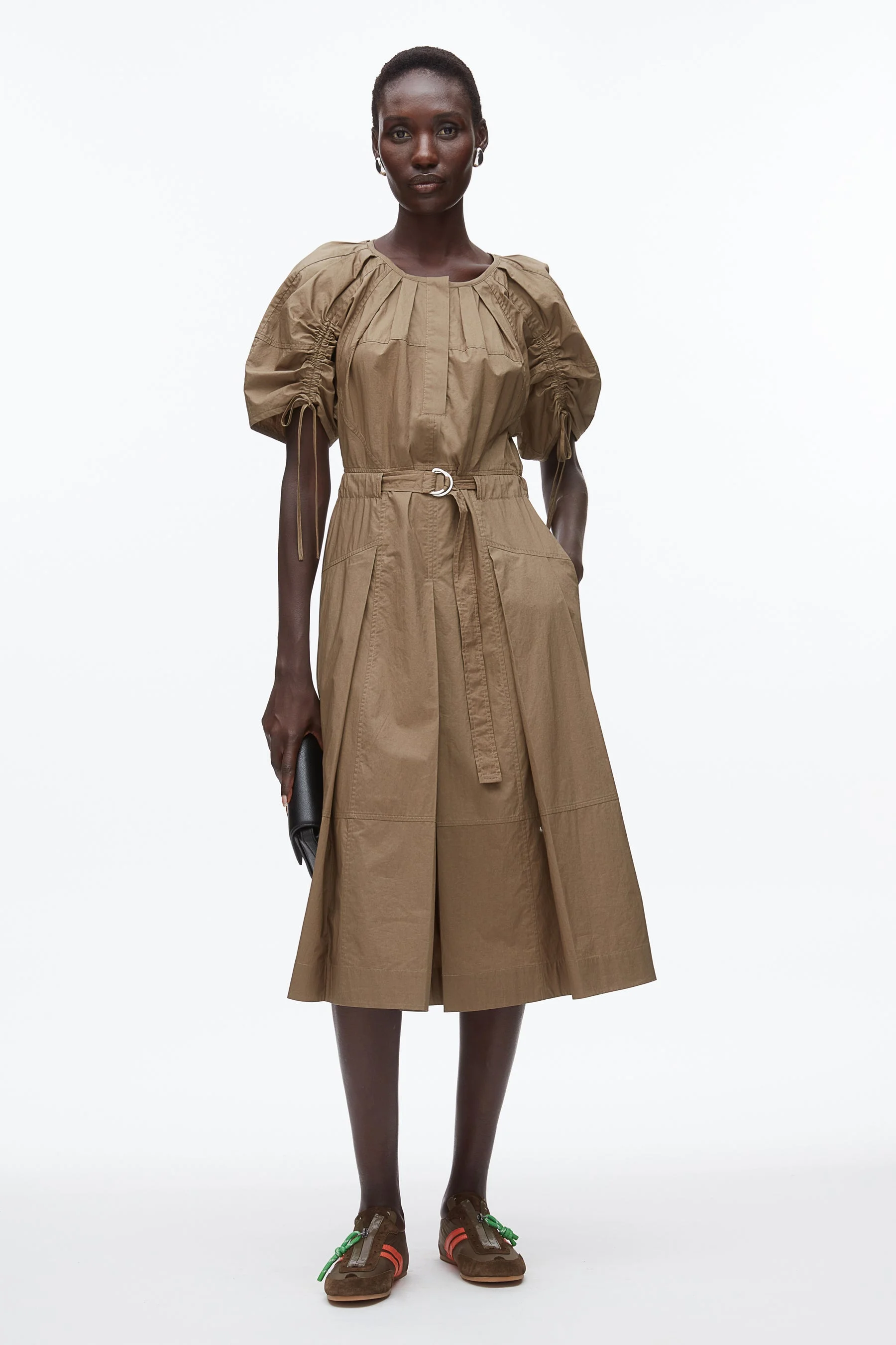 Poplin Ruched Sleeve Midi Dress