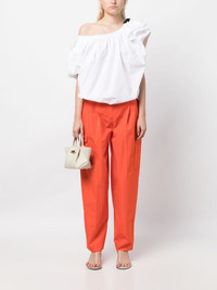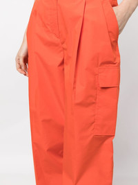poplin-texture cargo trousers Highlights - Tangerine orange - Cotton blend - Poplin texture - High-waisted - Concealed front fastening - Dart detailing - Two diagonal pockets to the sides - Two side cargo pockets - Rear flap pocket - Belt loops - Tapered wide leg Imported Composition Cotton 70%, Polyester 30% SIZE & FIT Model measurements Height 5 ft 9 in(1.76 m) Bust/Chest 31.1 in(79 cm) Hips 35.03 in(89 cm) Waist 24.4 in(62 cm) FittingInformation Designed for a straight-leg fit, these trousers allow for a close fit at the waist and an unrestricted, comfortable fit over the leg Made from a midweight non-stretch fabric This piece fits true to size – take your usual size Washing instructions Machine Wash