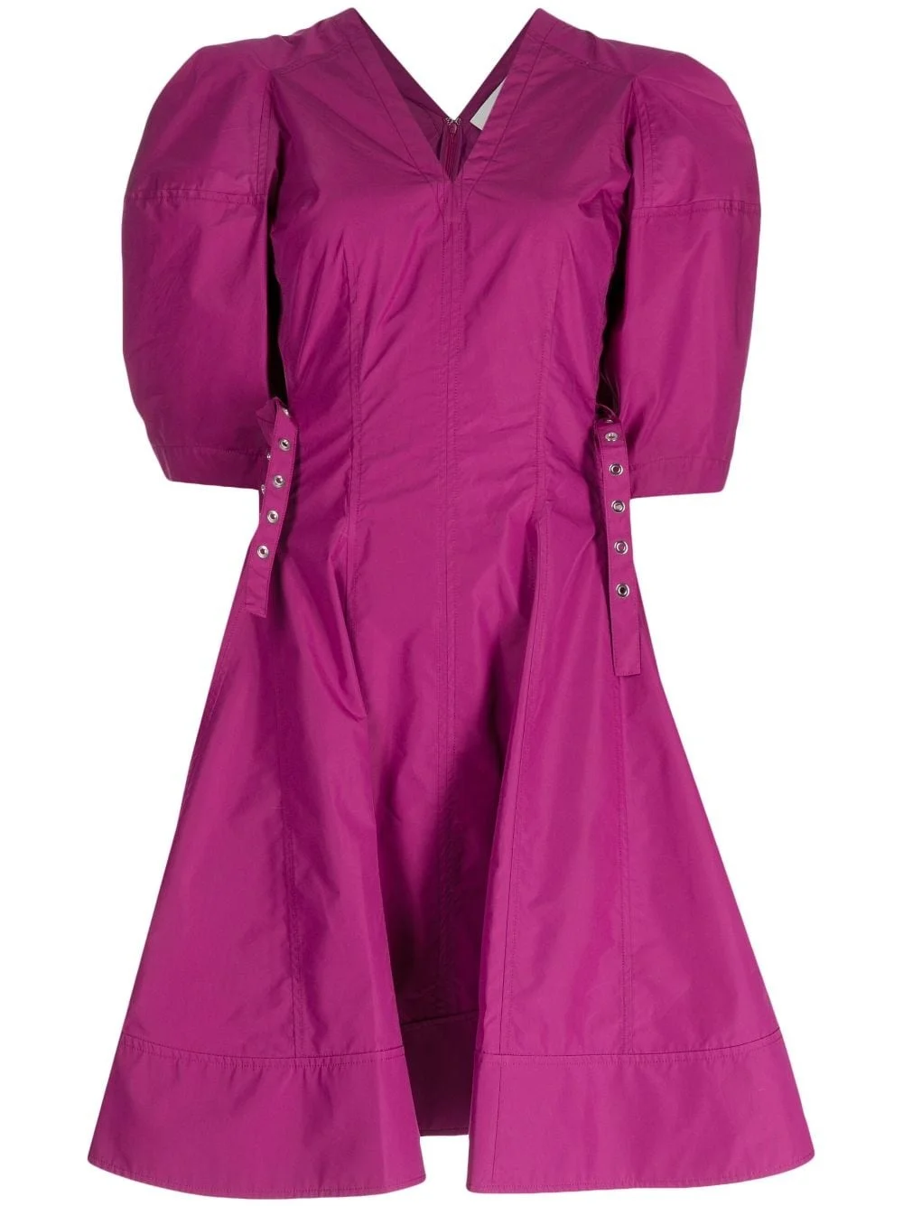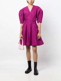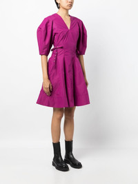 puff-sleeve V-neck godet dress Highlights - Mulberry purple - Cotton blend - V-neck - Rear zip fastening - Short puff sleeves - Godet design - Flared skirt - Straight hem - Thigh-length Imported Composition Cotton 70%, Polyester 30% SIZE & FIT Model measurements Height 5 ft 10 in(1.77 m) Bust/Chest 31.49 in(80 cm) Hips 35.43 in(90 cm) Waist 25.19 in(64 cm) FittingInformation Designed for a close fit at the chest and waist with a loose fit at the hip Constructed from stretch denim, this piece offers a stretch fit with durability This piece fits true to size – take your usual size Washing instructions Machine Wash