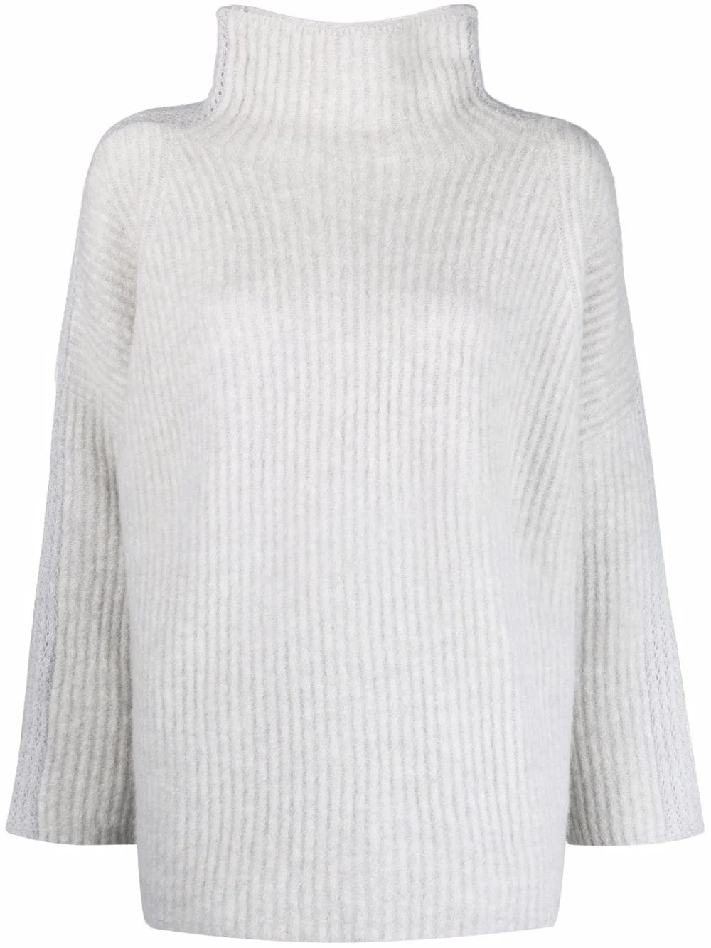 high-neck ribbed-knit jumper Imbued with a touch of the label's city-ready romanticism, this light grey 3.1 Phillip Lim jumper is characterised by its soft silhouette. Long wide sleeves emphasise the relaxed mood, while a high-neck is designed to lock-in warmth. Imported Composition Nylon 38%, Wool 36%, Alpaca 25%, Spandex/Elastane 1% Washing instructions Dry Clean Only