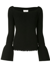 ribbed open neck top Do you believe in love at first sight? You will do after seeing this 3.1 Phillip Lim open neck top. The two of you will be 'knotted' together. Highlights - Black - Wool-blend - Square neck - Long sleeves - Flared cuffs - Ruffle hem - Ribbed detailing Imported Composition Wool 69%, Nylon 31% SIZE & FIT Model measurements Height 5 ft 9 in(1.76 m) Bust/Chest 29.13 in(74 cm) Hips 33.07 in(84 cm) Waist 22.83 in(58 cm) Measurement SLEEVE LENGTH 22.44 in(57 cm) LENGTH 22.04 in(56 cm) WAIST 29.13 in(74 cm) BUST 30.31 in(77 cm) FittingInformation This piece fits true to size. We recommend you get your regular size Cut for a slim fit Made with a mid-weight stretch fabric Washing instructions Dry Clean Only