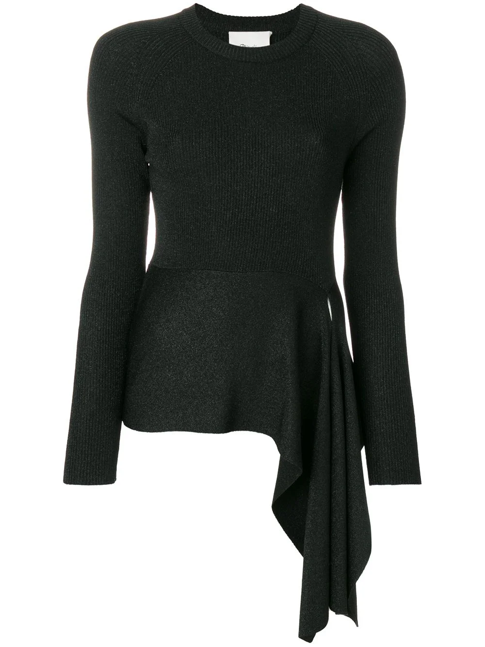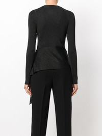 ribbed side tie top Winter days do not mean that you need to resign to elegance. Adorned with a glittering detail, this ribbed tie waist top from 3.1 Phillip Lim proves that you can be elegant and warm at the same time. Grabbing a hot chocolate is also mandatory. Highlights - Black - Round neck - Long sleeves - Glitter detailing - Side tie fastening Imported Composition Outer: Polyester 76%, Metallic Fibre 24% Washing instructions Dry Clean Only