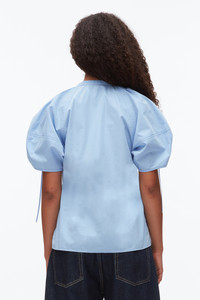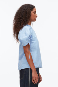 Designed for the multifaceted global citizen, this versatile top is airy yet full of impact. Cut from crisp technical poplin, it features ruched sleeves cinched with drawcord details. The deep V neckline and relaxed shape bring ease to a structured fabric, making it an effortless piece that moves seamlessly from weekday polish to weekend ease. Pair it with one of our denim pants for your new off-duty uniform. - 100% Cotton, 30% Recycled Polyester - Model is 5'10', Bust: 30', Waist: 23', Hips: 34' and wearing a size 4 - Professional dry clean only