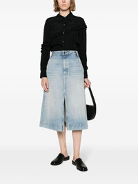 ruffled button-up shirt Highlights - Black - Ruffled detailing - Classic collar - Front button fastening - Long sleeves - Buttoned cuffs Imported Composition Viscose 100%