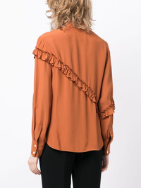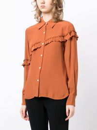ruffled long-sleeve shirt Highlights - Rust orange - Ruffled detailing - Classic collar - Front button fastening - Long sleeves - Buttoned cuffs - Curved hem Imported Composition Viscose 100%