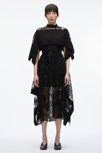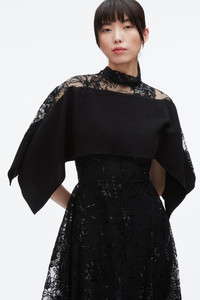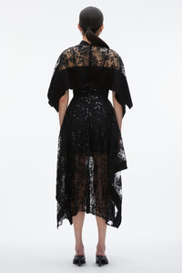 Delicate, dramatic, and undeniably romantic. This gown is a dream in sequin floral lace, its sheer layers draping effortlessly over the body with an airy fluidity. A cascading solid overlay adds a graphic modern touch, creating a striking interplay between vintage elegance and contemporary ease. Designed for grand entrances but light enough for dancing until dawn. Comes with matching slip. - 97% Polyamide 3% Metal - Model is 5'10', Bust: 30', Waist: 23', Hips: 34' and wearing a size 4 - Professional dry clean only