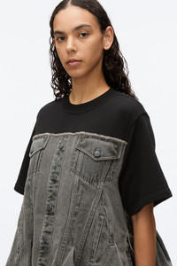Flounce Hem Hybrid Denim Top