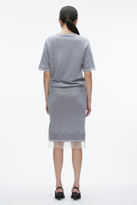 French Tuck Knit Dress with Organza