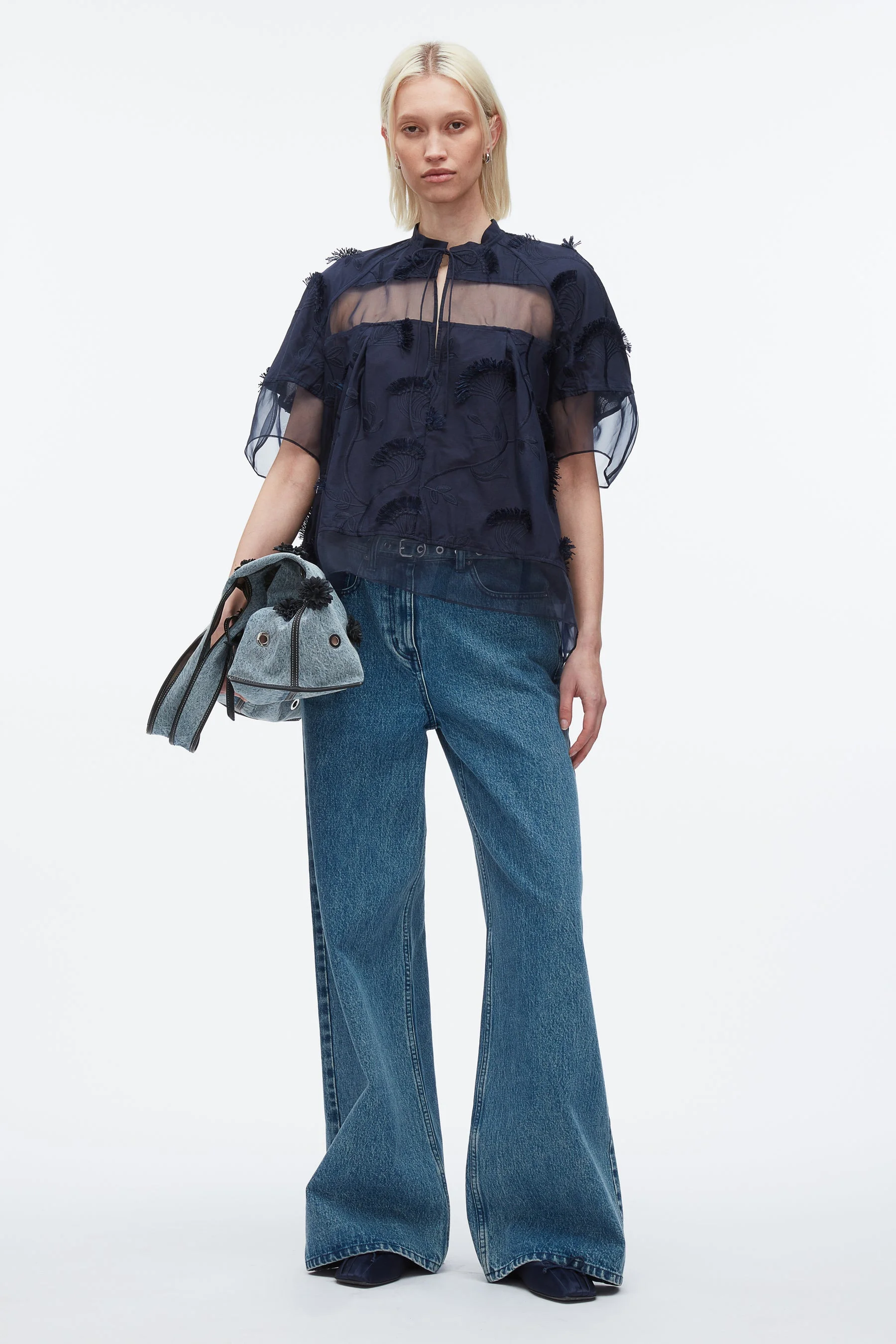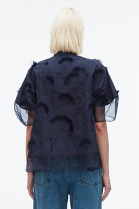 Inspired by the delicate growth of wheat stalks, this embroidered fil coupe fabric evokes pastoral beauty with a modern touch. Finished with sheer organza panels, it plays with transparency and texture to create soft volume and dimensional movement. A keyhole neckline and flutter sleeves add a romantic flourish, while the intricate embroidery brings the fabric to life with every step. Dress it up with our sheer panel skirt for an ethereal summer event look, or pair it back with slouchy denim to channel a sense of wanderlust. - 100% Cotton - Model is 5'10', Bust: 30', Waist: 23', Hips: 34' and wearing a size 4 - Professional dry clean only