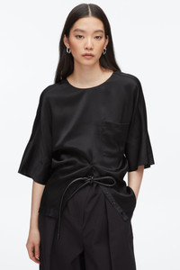 This short sleeve top blends relaxed structure with a soft, elevated finish. Designed with drop shoulders and button detail at the waist, it reimagines everyday dressing with quiet sophistication. Perfect on its own or layered, it’s an effortless essential with modern edge. - 100% Viscose - Model is 5'10', Bust: 30', Waist: 23', Hips: 34' and wearing a size 4 - Professional dry clean only