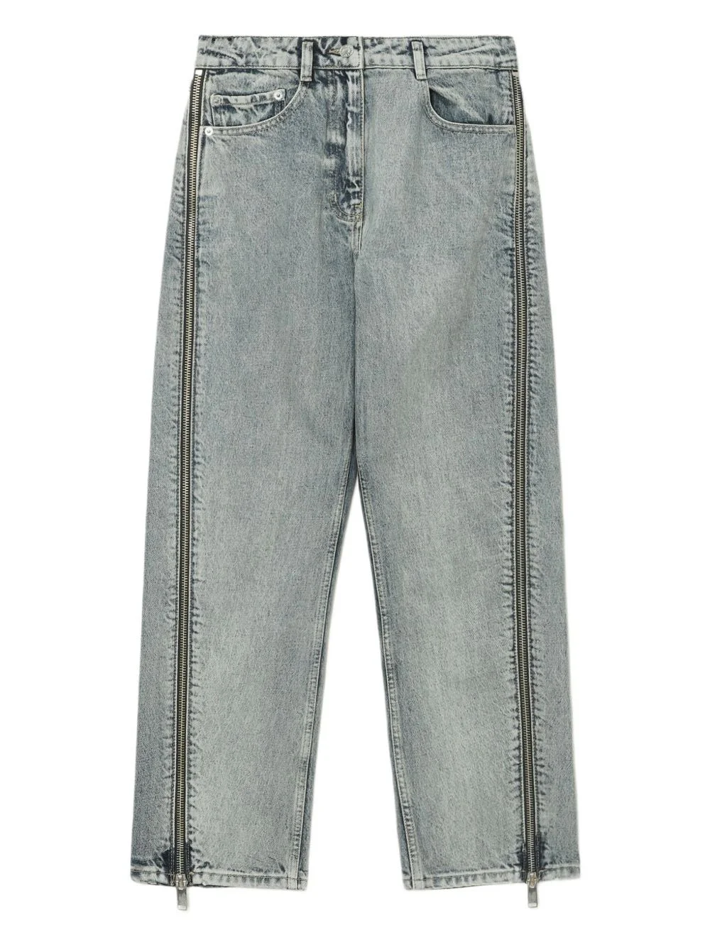 side-zip jeans Highlights - Blue - Side zip detailing - Five-pocket styling - Button fly - Straight leg - High waist Imported Composition Cotton 100% Washing instructions Read Manufacturer Guidelines