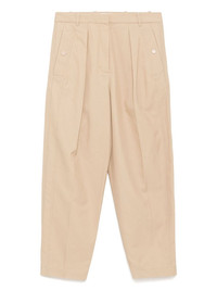 single-pleated tapered trousers Highlights - Sand brown - Concealed front button, hook and zip fastening - Belt loops - Two side button-fastening pockets - Rear button-fastening pocket Imported Composition Cotton 55%, Viscose 45%