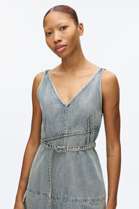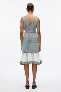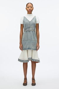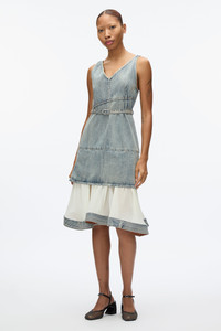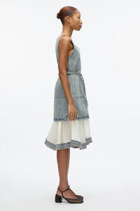 Playing with contrasts, this slip-inspired dress pairs utilitarian denim with a flouncy chiffon hem for a perfect blend of romance and New York edge. Finished with our signature hardware belt and a sleek zip-back entry, it redefines feminine dressing with a cool twist. - 100% Cotton - Model is 5'10', Bust: 30', Waist: 23', Hips: 34' and wearing a size Small - Professional dry clean only