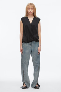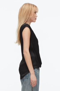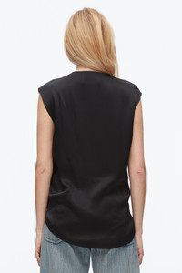 Effortlessly refined, the soft drape sleeveless blouse features a plunging v-neckline and fluid silhouette that skims the body with ease. Crafted for versatility and quiet elegance, it transitions seamlessly from casual denim pairings to more polished, tailored looks. - 100% Viscose - Model is 5'10', Bust: 30', Waist: 23', Hips: 34' and wearing a size 4 - Professional dry clean only