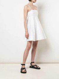 spaghetti a-line dress A timeless style. Perfect to go to a party or even to take to the office, this white spaghetti a-line dress from 3.1 Phillip Lim is an instant style upgrade. Designed with a flared skirt, it will add a feminine touch anytime. Level up, girl. Featuring spaghetti straps, a square neck, a back zip fastening, a flared skirt and a short length. Imported Composition Cotton 97%, Spandex/Elastane 3% SIZE & FIT Model measurements Height 5 ft 10 in(1.78 m) Bust/Chest 31.88 in(81 cm) Hips 33.85 in(86 cm) Waist 24.01 in(61 cm)