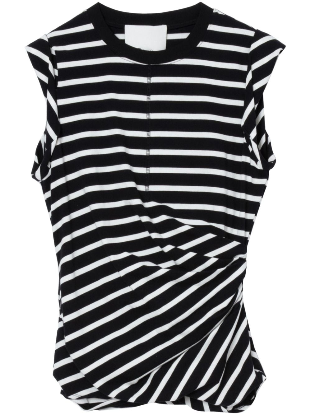 striped asymmetric cotton top Highlights - Black/white - Cotton - Multi-way stripe pattern - Asymmetric design - Draped detailing - Crew neck - Sleeveless - Asymmetric hem Imported Composition Cotton 100%