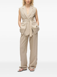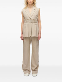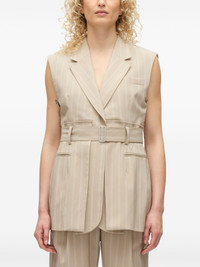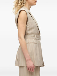 striped waistcoat Highlights - Brown - Vertical stripe pattern - Belted waist - Sleeveless Imported Composition Viscose 77%, Wool 23%