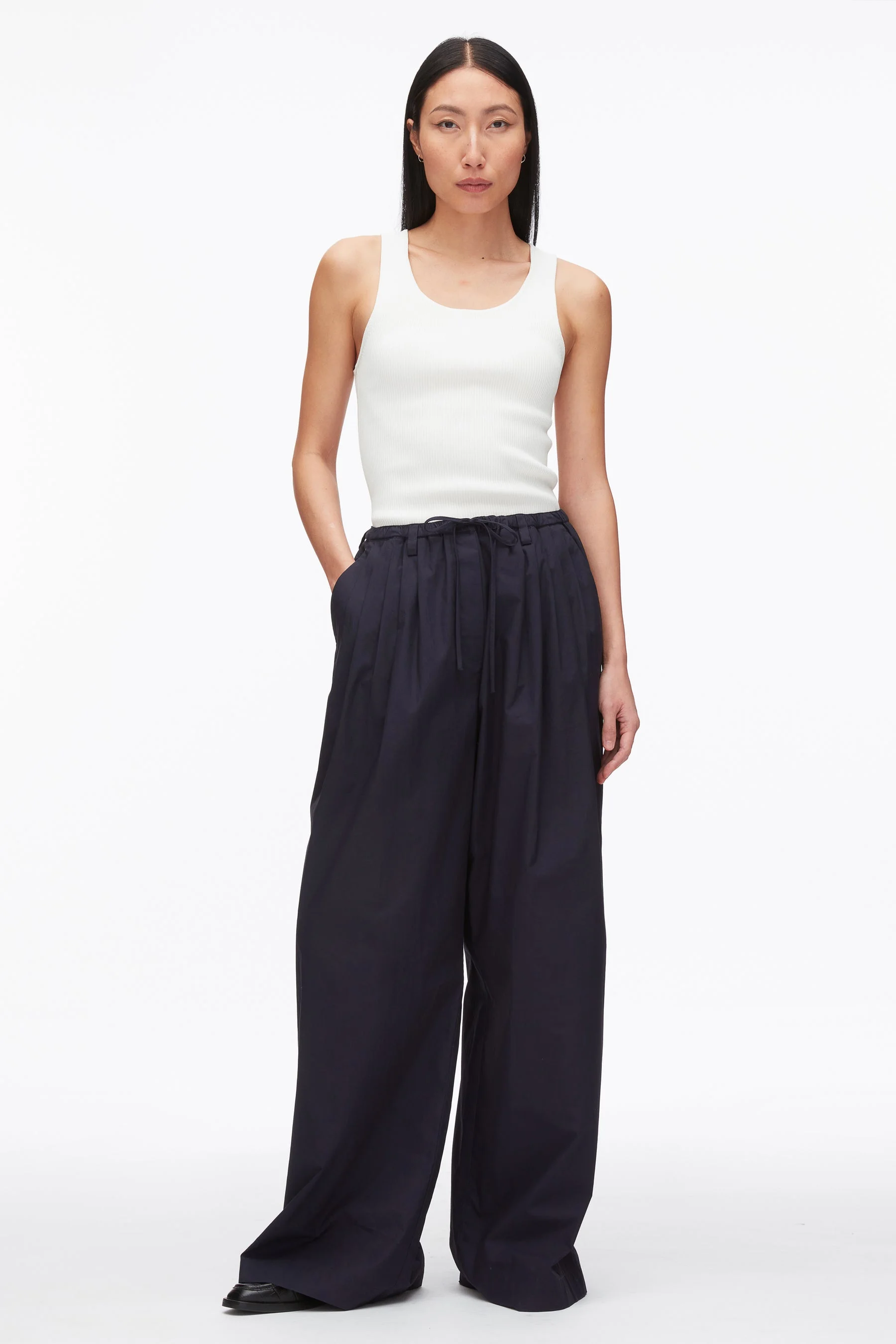 Easy doesn't have to mean undone. A straight leg silhouette in heavy cotton poplin gives these pull-on pants a crisp, grounded feel. With an adjustable drawstring waist, pockets, and belt loops, they’re easy to dress down—or sharpen up with a belt and button-down. - 100% Cotton - Model is 5'10', Bust: 30', Waist: 23', Hips: 34' and wearing a size 4 - Professional dry clean only