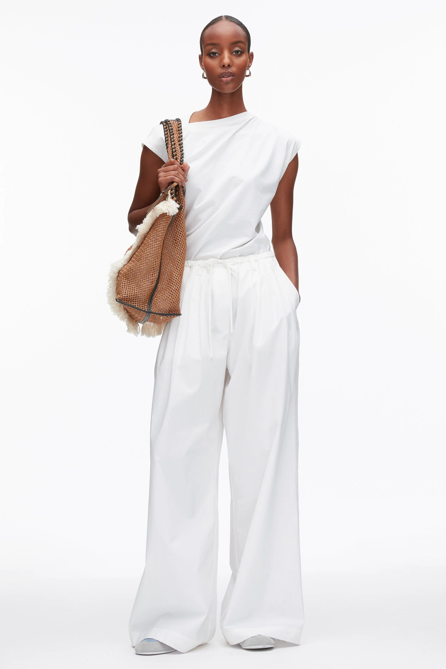 Easy doesn't have to mean undone. A straight leg silhouette in heavy cotton poplin gives these pull-on pants a crisp, grounded feel. With an adjustable drawstring waist, pockets, and belt loops, they’re easy to dress down—or sharpen up with a belt and button-down. - 100% Cotton - Model is 5'10', Bust: 30', Waist: 23', Hips: 34' and wearing a size 4 - Professional dry clean only