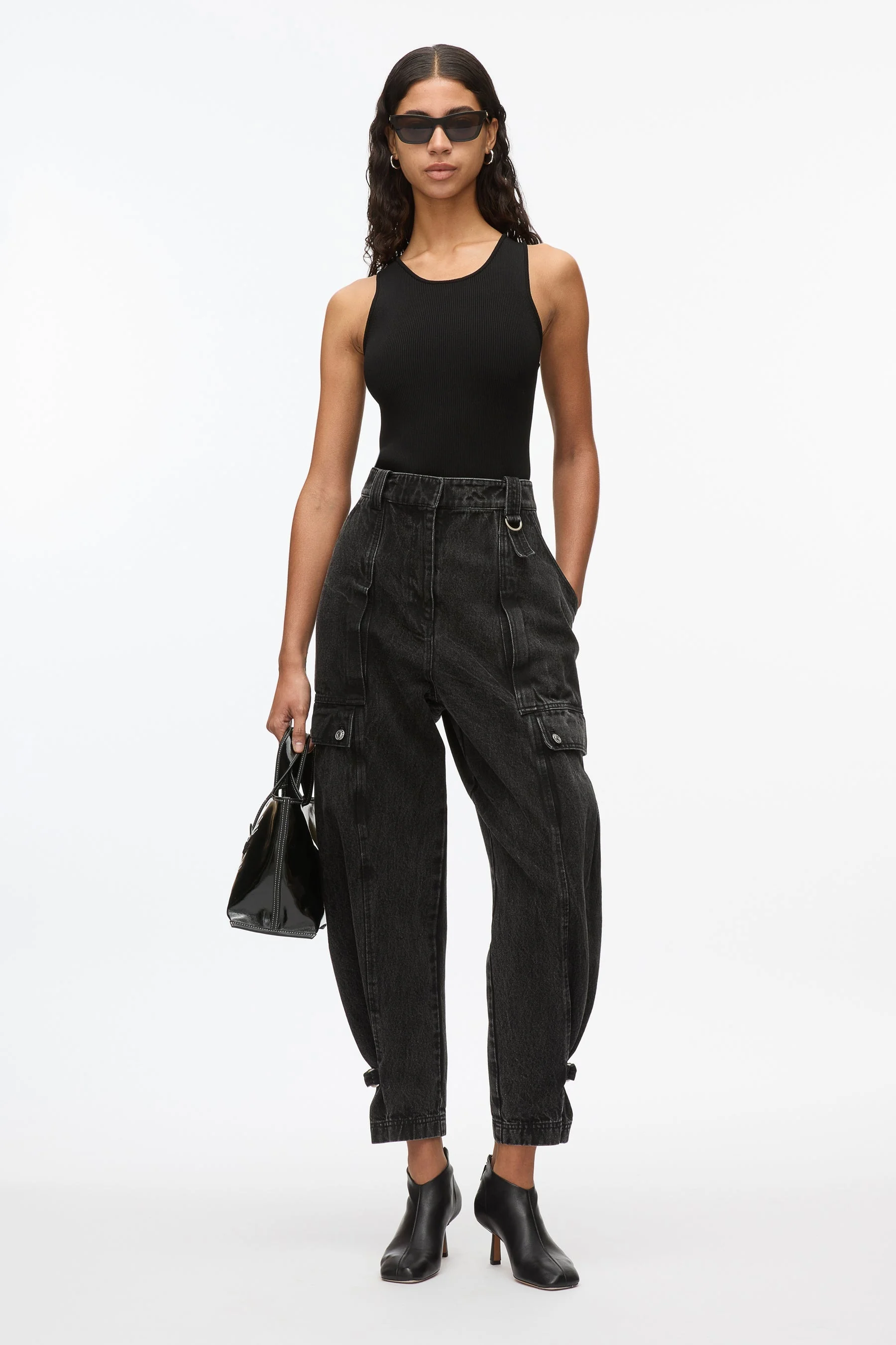 Nonchalant denim meets cargo detailing, these utility jeans are sure to be your off duty go to. Featuring patch pocket detailing and adjuster tabs at hem, it has a relaxed fit leg. - 100% Cotton - Model is 5'10', Bust: 30', Waist: 23', Hips: 34' and wearing a size 4 - Professional dry clean only