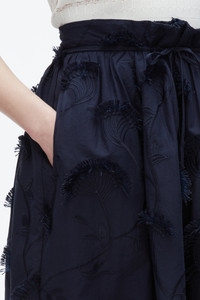 A romantic statement with a grounded sensibility. This midi skirt is crafted from delicate fil coupe embroidery on airy cotton voile, inspired by the natural movement of wheat stalks in the wind. Sheer organza panels add a hint of transparency and volume, creating an ethereal silhouette that floats with every step. Finished with a soft drawstring waist, it’s a piece that balances texture, movement, and ease. Style it with a tucked-in tank for everyday poetry, or lean into full romance with the matching embroidered top. - 100% Cotton - Model is 5'10', Bust: 30', Waist: 23', Hips: 34' and wearing a size 4 - Professional dry clean only