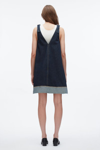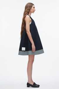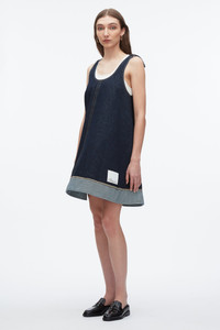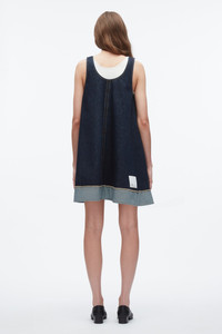 A fresh silhouette in a softer take on denim. Cut from lightweight indigo-washed cotton, this swingy mini dress features wide straps, contrast stitching, and a raw-cut hem with reversed facing for subtle contrast. Effortless on its own or layered over a tank, it’s your wear-anywhere piece for warm days ahead. - 100% Cotton - Model is 5'10', Bust: 30', Waist: 23', Hips: 34' and wearing a size 4 - Professional dry clean only