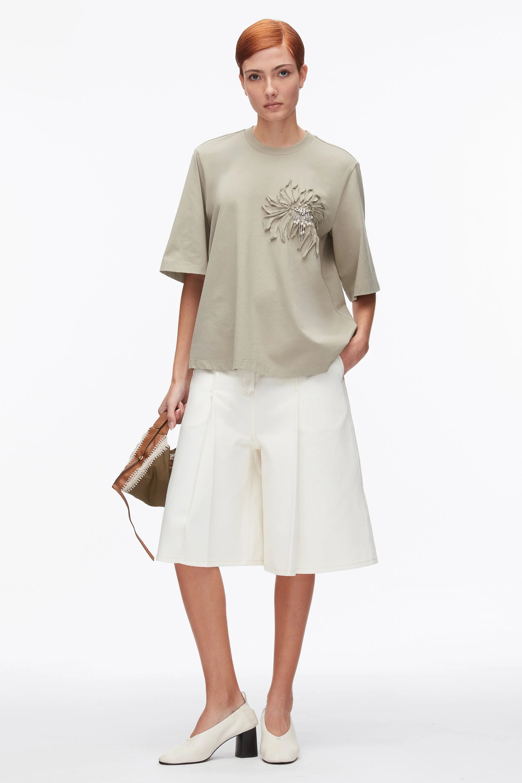 The classic tee, reimagined with a fresh, flared silhouette and graphic floral embroidery. Relaxed enough for running errands yet refined enough for nights out, the oversized fit brings a touch of drama to any outfit. Pair with jeans or layer over a skirt to instantly elevate any look. - 100% Cotton - Model is 5'10', Bust: 30', Waist: 23', Hips: 34' and wearing a size 4 - Professional dry clean only
