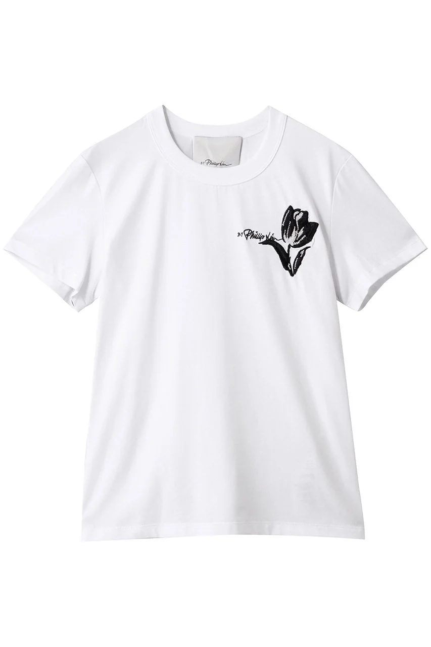 3.1 Phillip Lim Tulip Embroidered Cropped Short Sleeve Tee