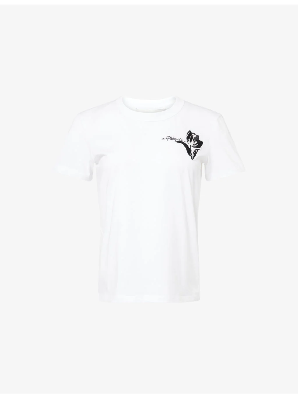 PRODUCT DETAILS - 3.1 Phillip Lim cotton-jersey T-shirt - 100% cotton - Regular fit, crew neck, short sleeves, tulip embroidery with logo at chest, cropped length - Machine wash cold - True to size - Model is 5ft 10in/1.78m and wears a size small - Lightweight, slight stretch Ref: R04487997