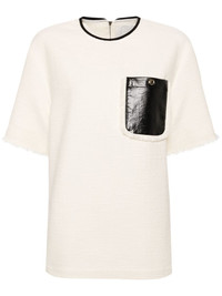 fringe tweed T-shirt Highlights - Ivory white - Cotton - Tweed - Fringe detailing - Side press-stud fastening - Rear zip fastening - Button-fastening chest pocket - Short sleeves - Straight hem Imported Composition Cotton 100%, Polyester 100%