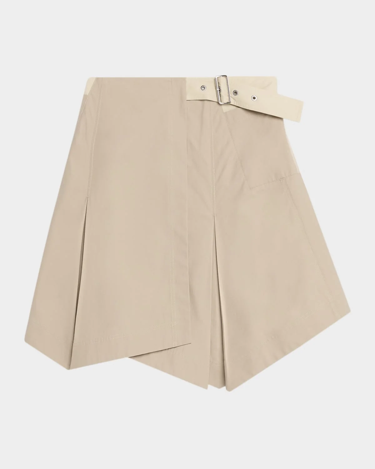 A utility-inspired silhouette, this 3.1 Phillip Lim skirt is crafted from two-tone twill and boasts an adjustable belted waist. High rise Wrap silhouette Handkerchief hem & nbsp; Hem hits around the knee & nbsp; Cotton Professional cleaning recommended Imported