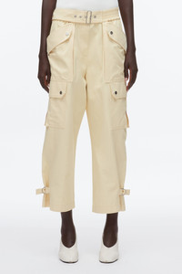 A fresh take on everyday ease, these cargo trousers are built with utility at their core yet refined enough for city dressing. Cut with a cropped, relaxed leg, they feature oversized flap pockets, adjustable buckle tabs, and a softly gathered waistband with D-ring closure. The result: a modern balance of function and polish that transitions seamlessly from off-duty to dressed-up styling. - 55% Cotton, 45% Viscose - Model is 5'10', Bust: 30', Waist: 23', Hips: 34' and wearing a size 4 - Professional dry clean only