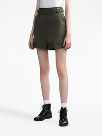 belted-waist cotton shorts Highlights - Khaki - Cotton - Silver-tone hardware - Belted waist - Two side inset pockets - Thigh-length - Straight hem - Rear welt pocket Imported Composition Cotton 100%