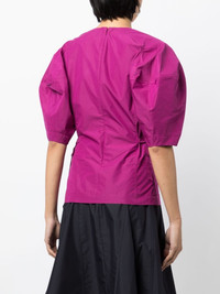 V-neck short-sleeve top Highlights - Mulberry purple - Cotton blend - V-neck - Rear zip fastening - Short puff sleeves - Straight hem Imported Composition Cotton 70%, Polyester 30% SIZE & FIT Model measurements Height 5 ft 10 in(1.77 m) Bust/Chest 31.49 in(80 cm) Hips 35.43 in(90 cm) Waist 25.19 in(64 cm) FittingInformation Designed for a slim fit that sits just away from the body offering a close yet comfortable fit Made from a midweight non-stretch fabric This piece fits true to size – take your usual size