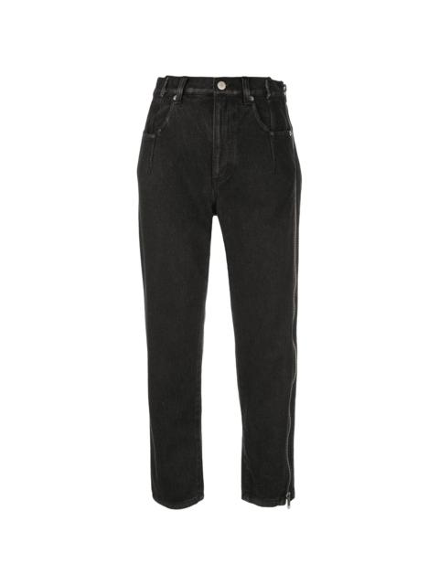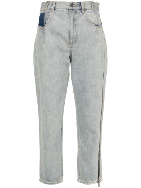high-waisted cropped jeans Crafted in a classic blue washed denim, these 3.1 Phillip Lim jeans are cut in a high-rise tapered silhouette and feature an asymmetric zip detail to one side for a contemporary edge. Highlights - Light blue - Cotton/denim - High-waisted - Belt loops - Concealed fly and button fastening - Classic five pockets - Side zip fastening - Straight leg - Cropped leg Imported Composition Outer: Cotton 100% SIZE & FIT Model measurements Height 5 ft 10 in(1.78 m) Bust/Chest 32.67 in(83 cm) Hips 35.43 in(90 cm) Waist 23.22 in(59 cm) FittingInformation Designed for a slim fit, these jeans offer a close fit at the waist and sit just away from the leg Constructed from stretch denim, this piece offers a stretch fit with durability This piece fits true to size – take your usual size Washing instructions Dry Clean Only
