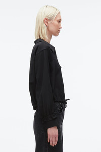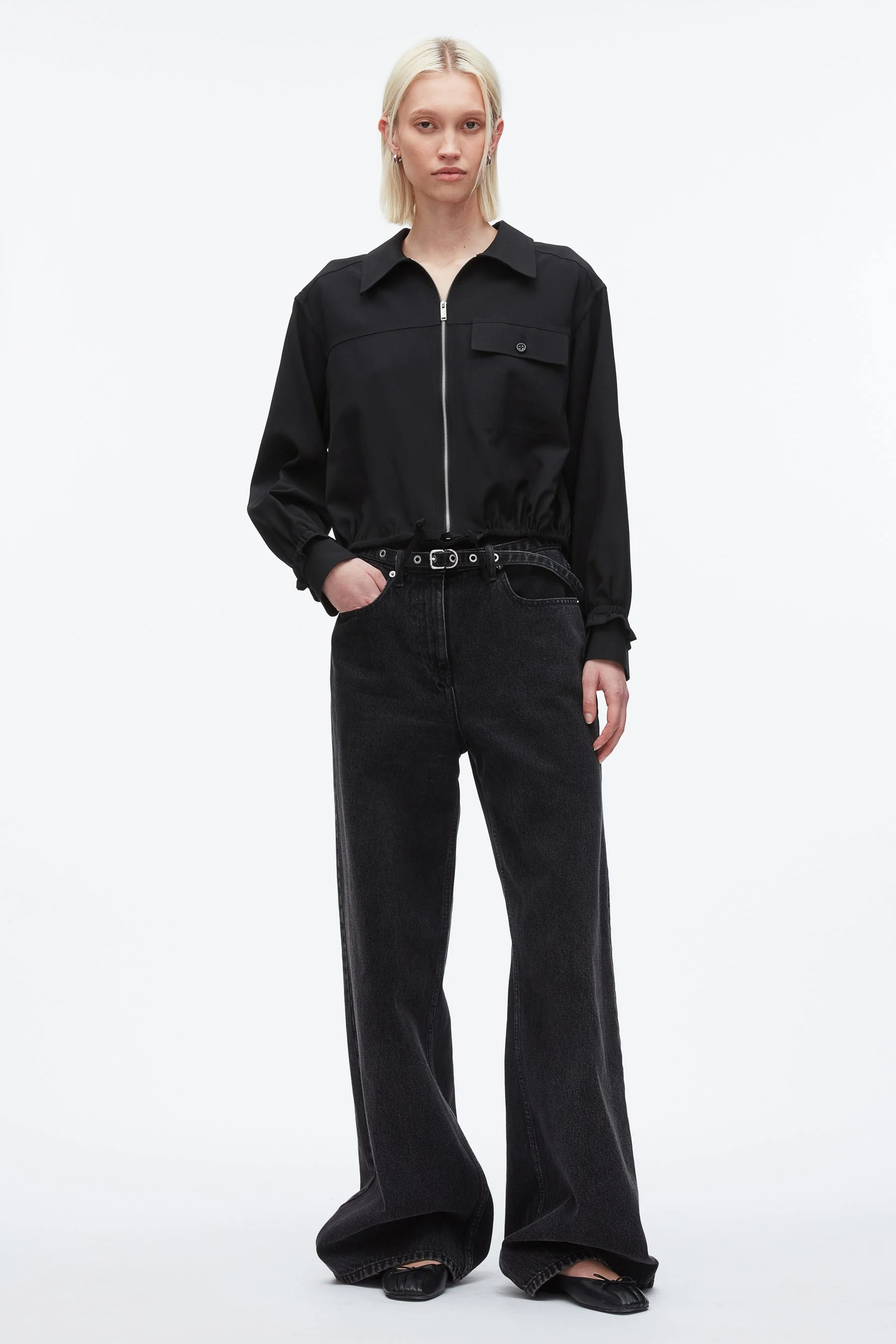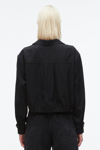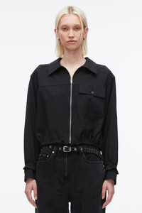 A modern staple for transitional dressing. This zip-front shirt is cut from an Italian wool-viscose blend with a lightweight, airy handfeel and fluid drape. The relaxed silhouette is cinched at the waist with a drawcord hem, while utilitarian touches—like the flap chest pocket and exposed zipper—lend a clean, versatile edge. Wear it solo or layered as an effortless update to your everyday uniform. - 52% Wool, 48% Viscose - Model is 5'10', Bust: 30', Waist: 23', Hips: 34' and wearing a size 4 - Professional dry clean only
