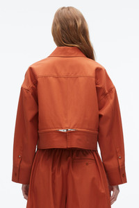 Grounded in utility but elevated in attitude, this cropped jacket reimagines the classic Harrington through a modern, feminine lens. Cut from a soft-yet-structured viscose twill, it features a trapeze silhouette with sculptural sleeves and a bold double zip detail at the hem—designed to wear closed or partially unzipped for added volume and shape. Flap pockets nod to tradition, while the sharp collar and minimal hardware keep things clean. Wear it with the matching skirt or style over tailoring for a city-ready edge. - 55% Cotton, 45% Viscose - Model is 5'10', Bust: 30', Waist: 23', Hips: 34' and wearing a size 4 - Professional dry clean only
