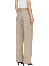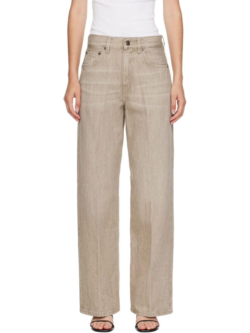Wide straight-leg non-stretch denim jeans. · Fading and whiskering throughout · Mid-rise · Belt loops · Five-pocket styling · Leather logo patch at back waistband Supplier color: Sanded quartz 100% cotton. Made in Italy 252446F069010