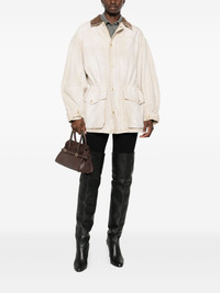 corduroy-collar jacket Highlights - Beige - Corduroy collar - Front press-stud closure - Front flap pockets - Drawstring waist - Cotton Imported Composition Cotton 100% SIZE & FIT Model measurements Height 5 ft 10 in(1.77 m) Bust/Chest 32.28 in(82 cm) Hips 35.03 in(89 cm) Waist 25.19 in(64 cm) Washing instructions Read Manufacturer Guidelines