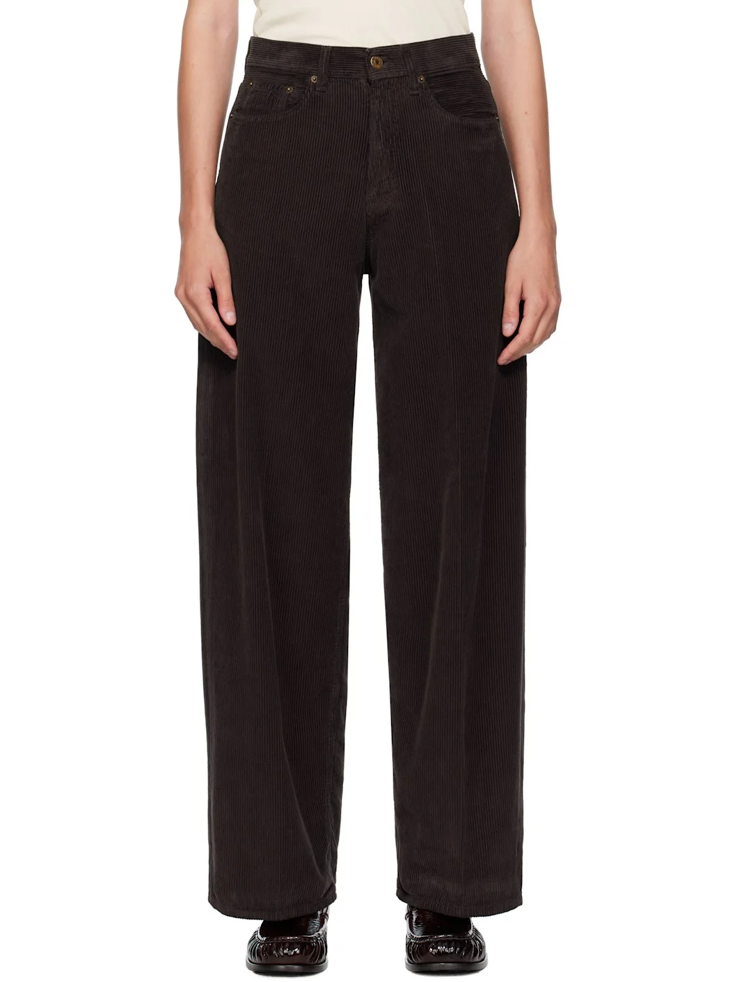 Cotton corduroy trousers. · Belt loops · Five-pocket styling · Zip fly · Logo patch at back waistband Supplier color: Chocolate 100% cotton. Made in Italy 252446F069005
